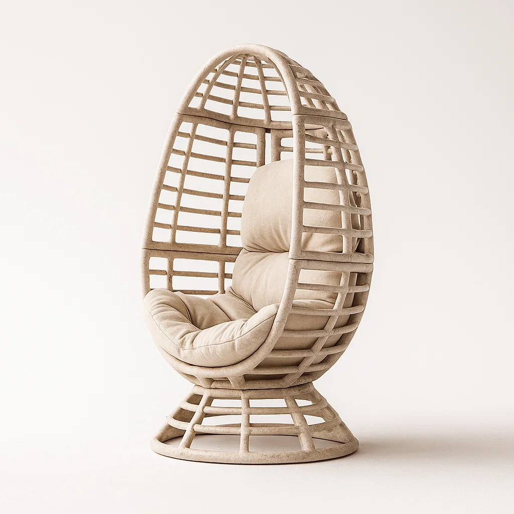 Chaise de détente œuf en métal doré avec coussins en polyuréthane beige